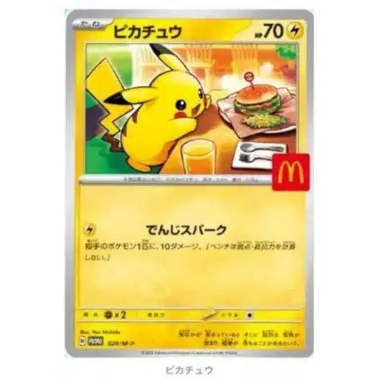 Fra den 9. til 11. august kan kunder få et nyt Pikachu-promokort samt ét af fem tilfældige promokort: Sprigatito, Fuecoco, Quaxly, Ralts og Riolu. Alle promokortene er genoptryk fra nyere sæt, men kun Pikachu-kortet har helt nyt artwork. Hvert kort har et stempel med McDonald’s-logoet.