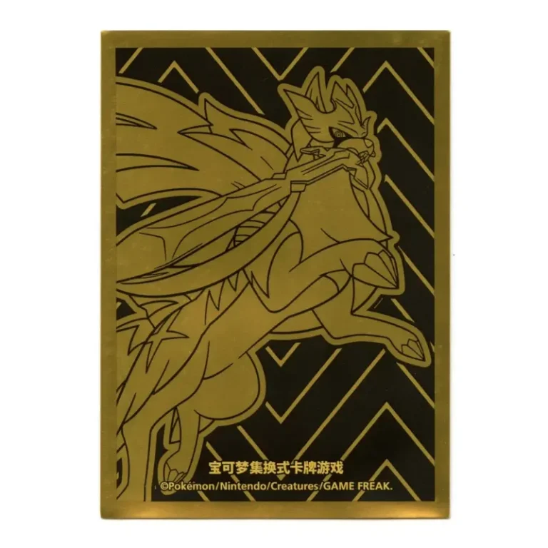 Pokemon TCG sleeves fra Black & Gold Box med Zacian-motiv. Indeholder 65 officielle sleeves fra det kinesiske Pokemon Center.
